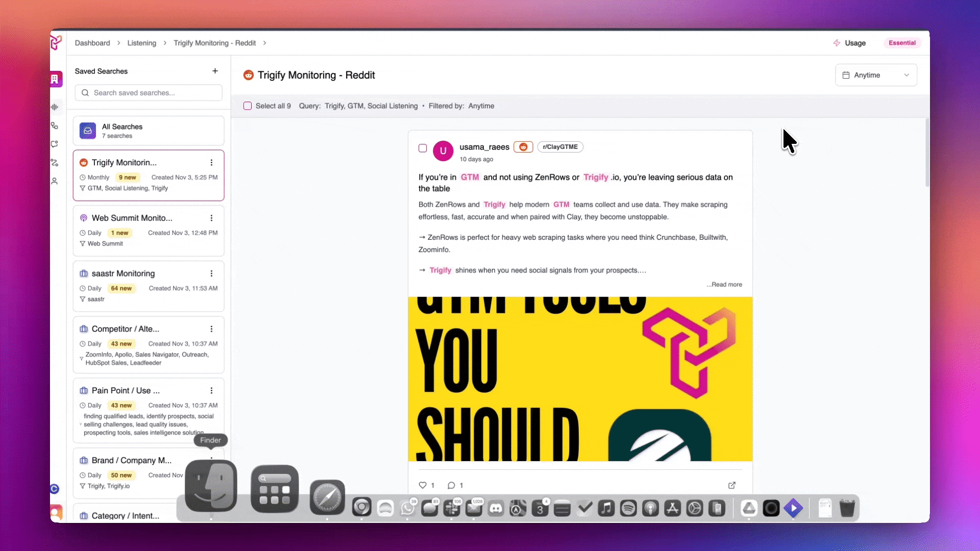 • If your workflow finds 10 social posts, that will use 10 credits (1 per post).